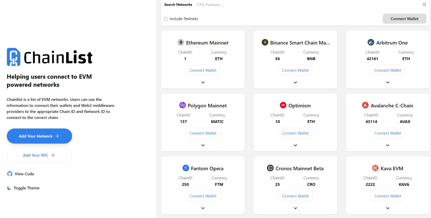 1. First, visit [Chainlist.org](https://chainlist.org)&#x20;