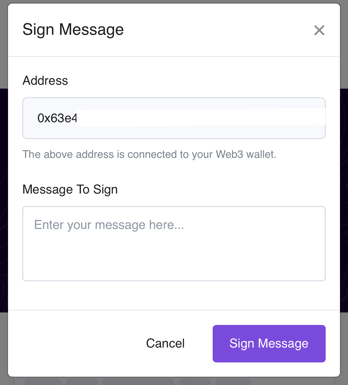 The following instructions will help guide you through the process of signing a message in order to verify that you are the address owner. <br>
